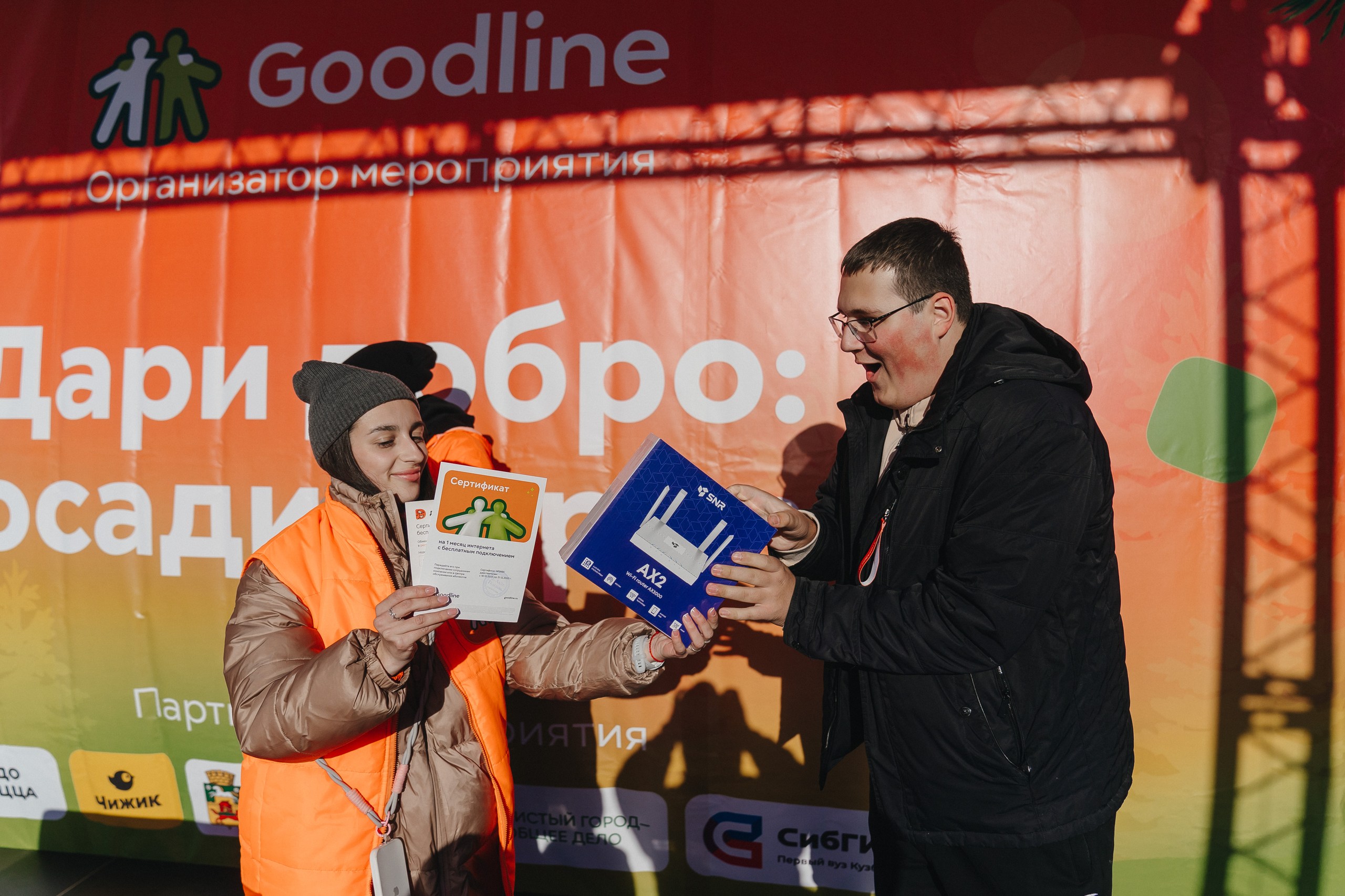 Особой популярностью пользовалась фотобудка с моментальной печатью, где семьи и компании друзей делали яркие снимки на память о своем вкладе в озеленение города. Кульминацией праздника стал розыгрыш подарков от Goodline: смарт-приставки «Большое ТВ», современного высокоскоростного роутера SNR AX2 и других ценных призов.